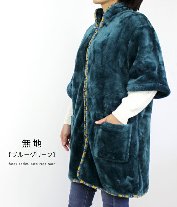 《 宅配便 》着る毛布 五分袖 ガウン あったか ポンチョ ファスナー スタンドカラー 裏起毛 毛布 もこもこ ファンシー アニマル ネコ トナカイ 無地 ルームウエア はんてん 快適 暖かい 軽量 防寒 部屋着 羽織り プレミアム マイヤー レディース